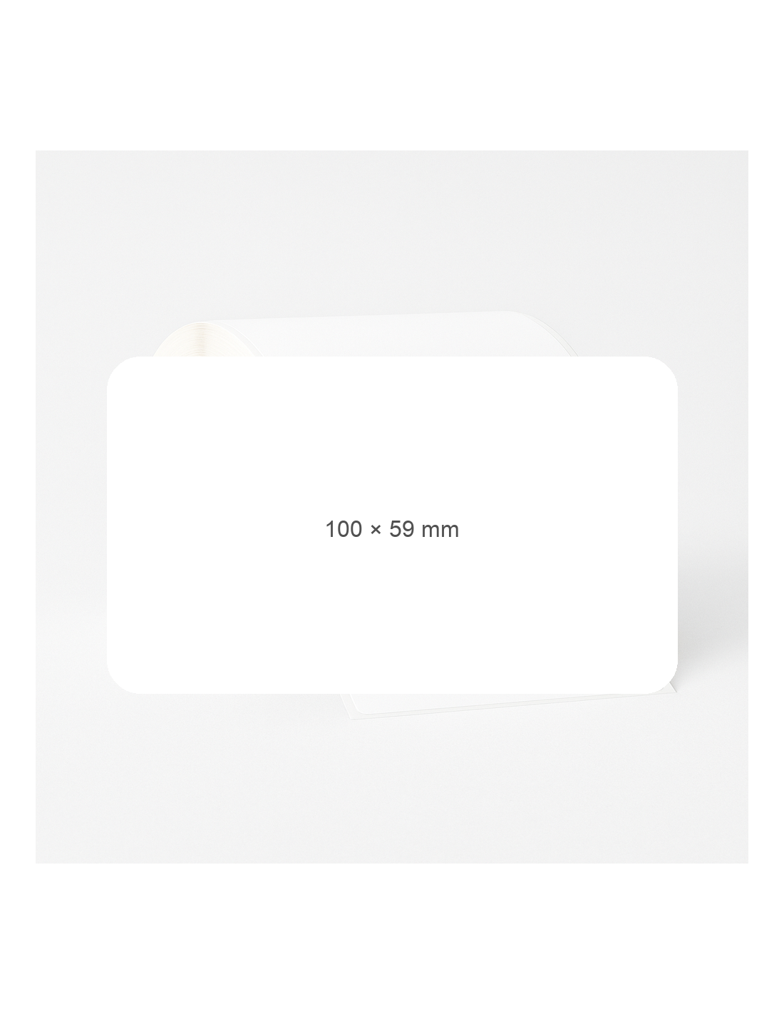 Adhesive labels. Width:100 mm, Height:59,6 mm. Material: Thermo Ecco. 800 rolls per roll. Quantity per box: 12,8 t.