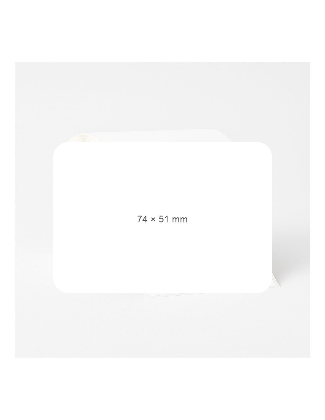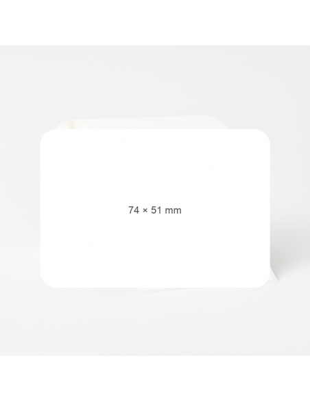 Adhesive labels. Width:74 mm, Height:51 mm. Material: Thermo Ecco. Rolls of 1000 pieces. Quantity per box: 24 t.