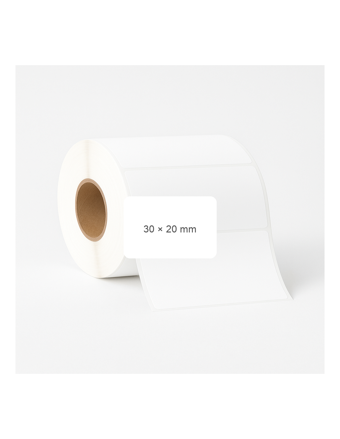 Adhesive labels. Width:30 mm, Height:20 mm. Material: Thermo Ecco. Rolls of 2200 pcs. Quantity per box: 140,8 t.