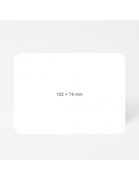 Adhesive labels. Width:102 mm, Height:74 mm. Material: Thermo Ecco. Rolls of 700-1000 pieces. Quantity per box: 11-11,2 thousand.