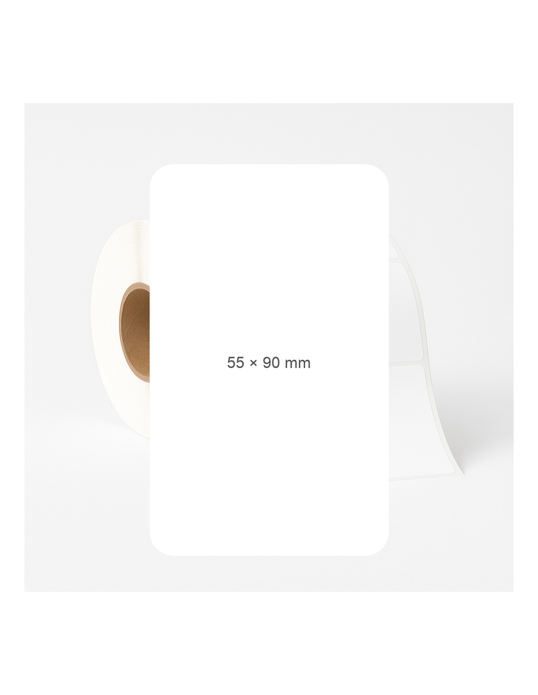 Lipnių etikečių ruošiniai. Plotis: 38mm, Aukštis: 25mm. Medžiaga: Thermo ecco. Kaina nurodoma už 1 ruloną . 1 rulone - 500vnt.