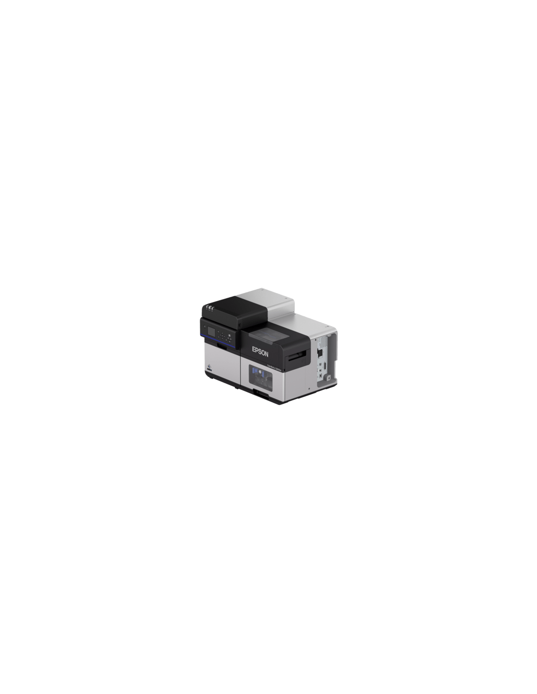 colour label printer, ink-jet, resolution: 47 dots/mm (1200 dpi), media width (max.): 112 mm, print width (max.): 108 mm, speed (max.): 300 mm/s, cutter, display, USB (3.0), Ethernet, incl.: cable (USB), power supply unit, Label roll, ink cartridge, QSG, order separately: power cable, colour: black, grey