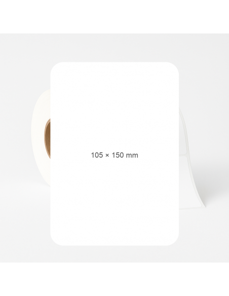 Adhesive labels 105x150mm. Polypropylene. Standard adhesive. 350pcs. Price is for 1 roll. Sticker width: 105mm. Sticker height: 150mm. Material: Polypropylene. Packing: 1 Roll.