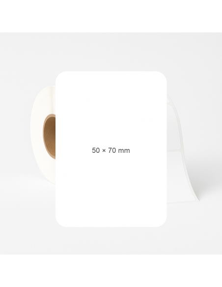 Adhesive labels 50x70mm. Thermo. Standard adhesive. 500pcs. Price is for 1 roll. Sticker width: 50mm. Sticker height: 70mm. Material: Thermo. Packing: 1 Roll.